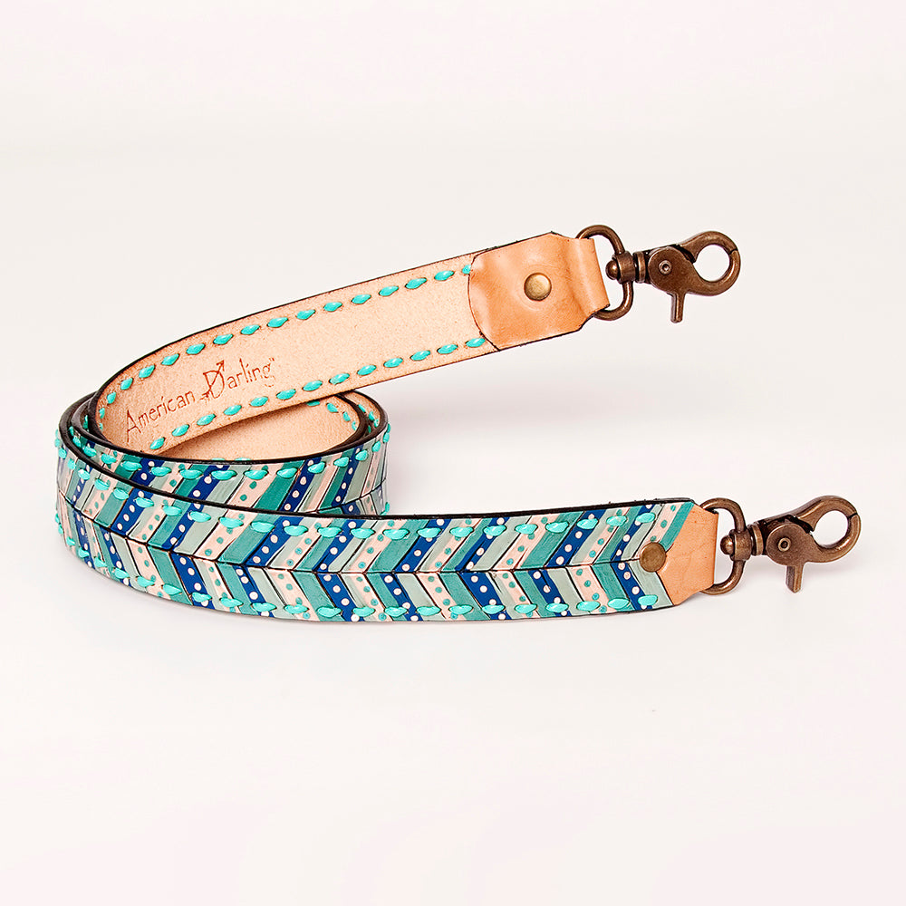 American Darling ADSTF114TRQBU Hand Tooled Genuine Leather Crossbody Handle Strap For Bags