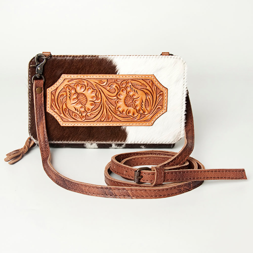 American Darling Clutch Hand Tooled Hair on Genuine Leather Western Women Bag Handbag Purse | Crossbody for Cute