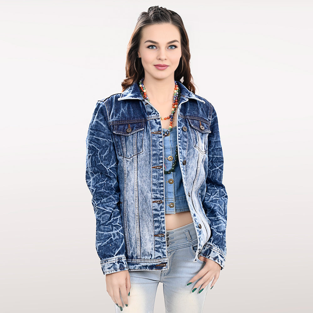 ADJKT020 Genuine leather Hand tooled hand carved Women 100% cotton Denim jacket dress ladies girl
