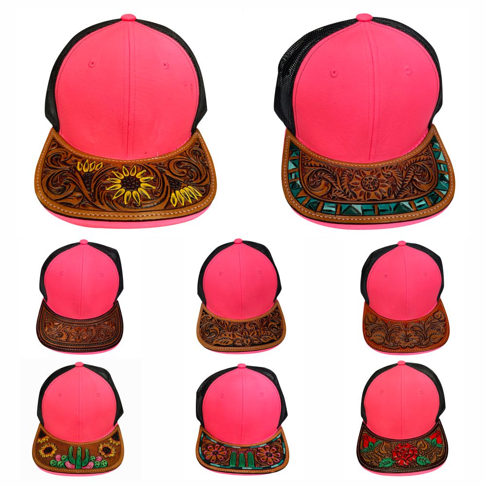 American Darling Men Women Adjustable Cap With Leather On Visor Red w/ Black