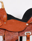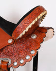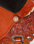 Hilason Western Horse Barrel Flex Tree Trail Saddle American Leather Saddle Tan Gorgeous Floral Hand Tooled & Carved